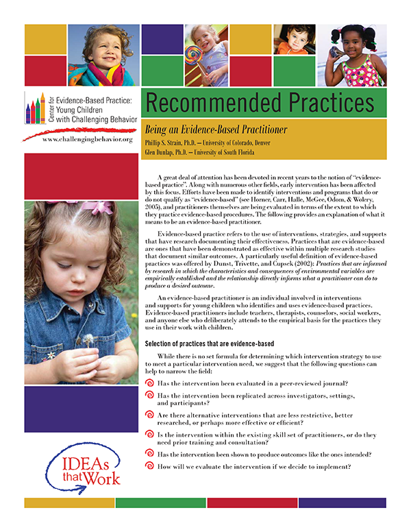 Recommended Practices: Being an Evidence-Based Practitioner: What does it take to be an evidence-based practitioner?