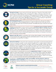 Provides helpful tips about timing, pacing, providing opportunities for group members to share, and other considerations related to the size and make up of a group.