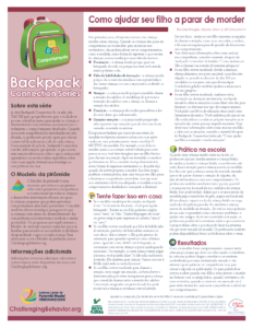 The Backpack Connection Series was created by TACSEI to provide a way for teachers and parents/caregivers to work together to help young children develop social emotional skills and reduce challenging behavior. Teachers may choose to send a handout home in each child’s backpack when a new strategy or skill is introduced to the class.