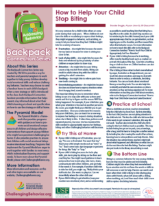 The Backpack Connection Series was created by TACSEI to provide a way for teachers and parents/caregivers to work together to help young children develop social emotional skills and reduce challenging behavior. Teachers may choose to send a handout home in each child’s backpack when a new strategy or skill is introduced to the class.