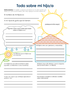 This document is designed to be used to gather information about the children in your classrooms. It will provide teachers with important information to help them build a relationship with each and every child and family.