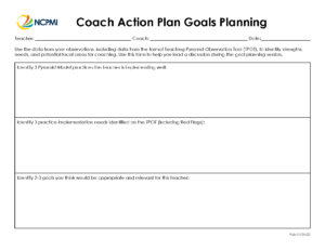 Used by the coach to reflect on TPOT observation and what goals might be suggested to the coachee during the goal plannning session.