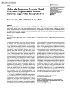 Allen, R., & Steed, E. A. (2016). Culturally responsive Pyramid Model practices: Program-Wide positive behavior support for young children. Topics in Early Childhood Special Education, 36, 165 , 175.