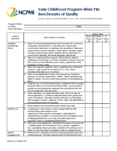 The Early Childhood Program-Wide PBS Benchmarks of Quality (Program BoQ) is designed to help programs evaluate their progress toward implementing the Pyramid Model program-wide.