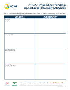 Use this schedule template to assist with planning opportunities for children to engage in social interaction.