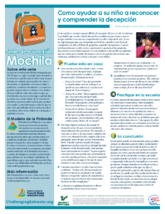 The Backpack Connection Series was created by TACSEI to provide a way for teachers and parents/caregivers to work together to help young children develop social emotional skills and reduce challenging behavior. Teachers may choose to send a handout home in each child’s backpack when a new strategy or skill is introduced to the class.
