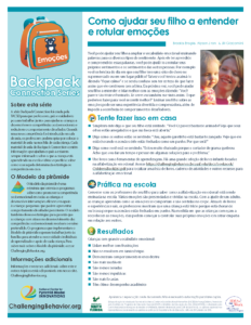 The Backpack Connection Series was created by TACSEI to provide a way for teachers and parents/caregivers to work together to help young children develop social emotional skills and reduce challenging behavior. Teachers may choose to send a handout home in each child’s backpack when a new strategy or skill is introduced to the class.