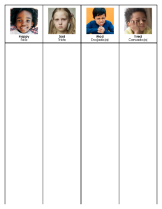The Feeling Faces assist children with understanding their feelings and the feelings of others. It is important to teach children words to use to express feelings in replace of the use of challenging behavior. The feeling faces that follow can be used in a variety of ways to help children learn social emotional skills around use of emotional literacy and vocabulary.