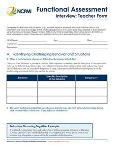 The functional assessment interview for teachers was developed to gather information about an individual child for the purpose of behavior support planning.