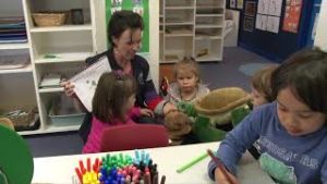 Child is coloring a picture of a turtle and the teacher takes the opportunity to teach an impromptu lesson on Tucker the Turtle.