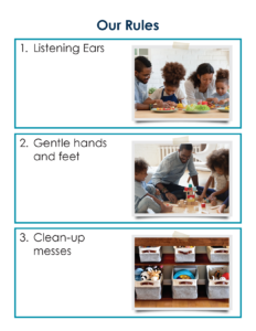 Sample poster showing how a family may use visuals to teach family rules.