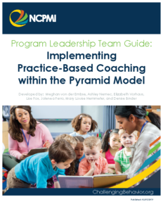 This resource provides Pyramid Model leadership teams with guidance for implementing Practice-Based Coaching within their programs and developing plans for three essential elements of coaching: 1) Getting Ready for Coaching; 2) Enacting Coaching; and 3) Evaluating Coaching.