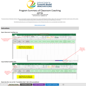 The Program Log is used to compile individual coach data across all coaches. These data provide the leadership team with a summary of the coaching effort and strategies used within the program.