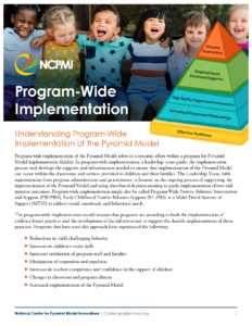 Overview of program-wide implementation to use in the recruitment of implementation sites. Describes components, considerations, and addresses frequently asked questions.