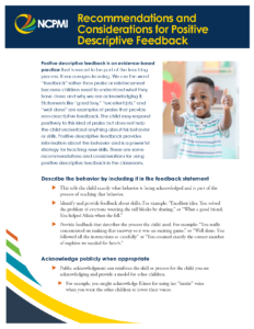 Positive descriptive feedback is a powerful strategy for teaching new skills and maintaining learned skills. By providing information about the child’s behavior as part of the feedback, the teacher helps the child understand what they have done and why it is being acknowledged.