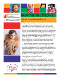 Assessment-based, individualized interventions are needed for young children with persistent challenging behavior. This fact sheet provides guidance on the implementation of Positive Behavior Support and the development of effective behavior support strategies.