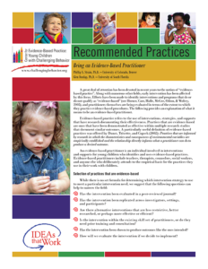This fact sheet describes what evidence-based practitioners do, notes some of the challenges that affect the implementation of evidence-based practices, and offers advice for addressing those challenges.