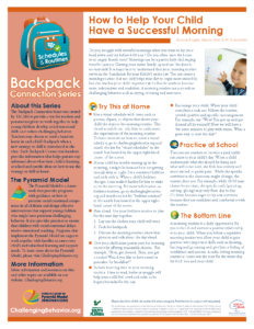 The Backpack Connection Series was created by TACSEI to provide a way for teachers and parents/caregivers to work together to help young children develop social emotional skills and reduce challenging behavior. Teachers may choose to send a handout home in each child’s backpack when a new strategy or skill is introduced to the class.
