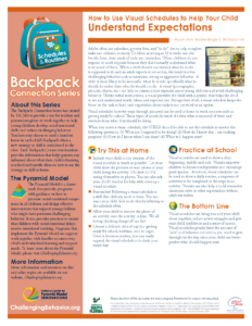 The Backpack Connection Series was created by TACSEI to provide a way for teachers and parents/caregivers to work together to help young children develop social emotional skills and reduce challenging behavior. Teachers may choose to send a handout home in each child’s backpack when a new strategy or skill is introduced to the class.