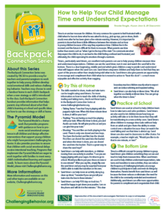 The Backpack Connection Series was created by TACSEI to provide a way for teachers and parents/caregivers to work together to help young children develop social emotional skills and reduce challenging behavior. Teachers may choose to send a handout home in each child’s backpack when a new strategy or skill is introduced to the class.