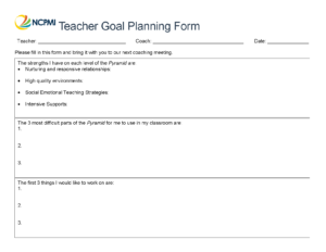 The teacher goal planning form can be used prior to action planning to help a teacher prepare his/her thoughts after Pyramid Model training.