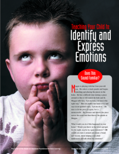 Young children deal with many of the same emotions adults do. Children get angry, sad, frustrated, nervous, happy, or embarrassed, but they often do not have the words to talk about how they are feeling. Instead, they sometimes act out these emotions in very physical and inappropriate ways. This four-page handout describes specific steps and strategies adults can use to help children express themselves in ways that are appropriate.