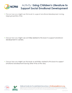 Handout with questions helping practitioners plan for using literature to teach social and emotional skills.
